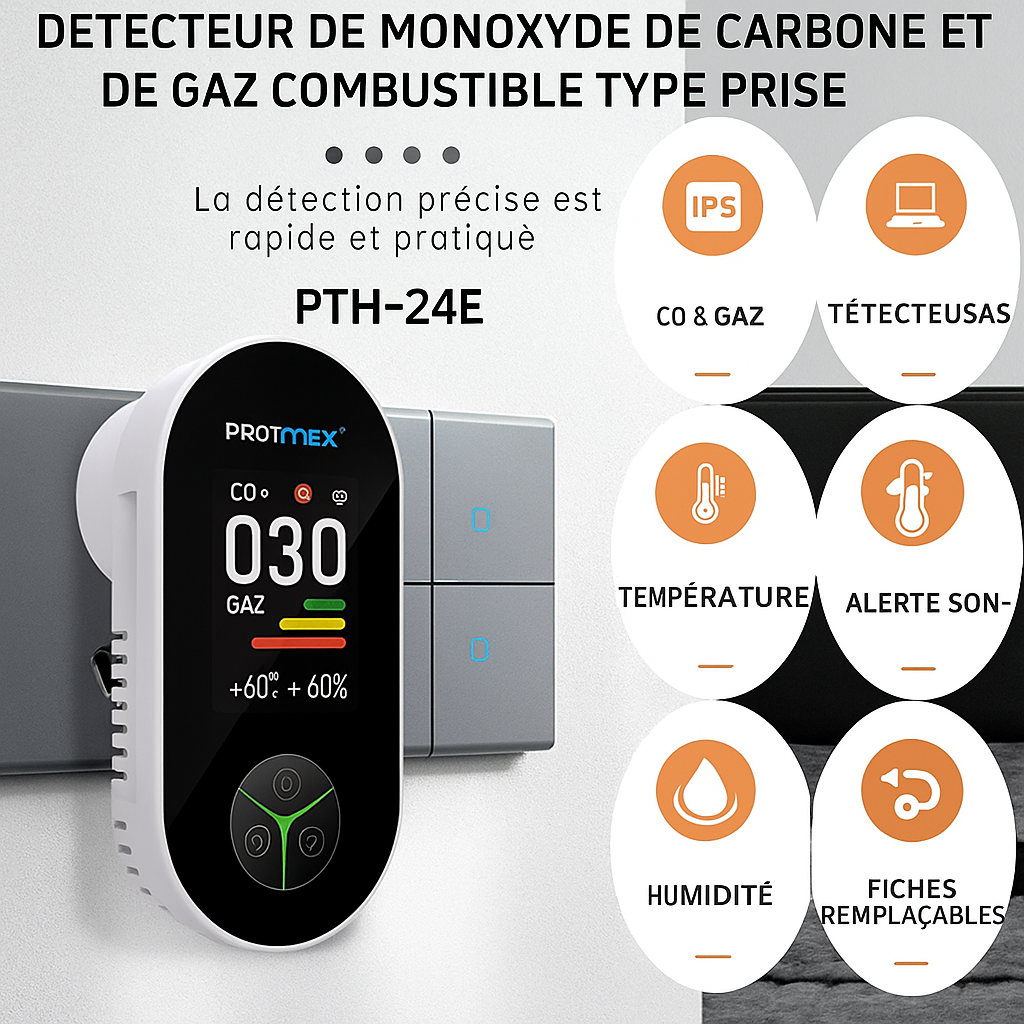 Détecteurs de monoxyde de carbone portables Protmex et détecteur de gaz naturel à brancher
